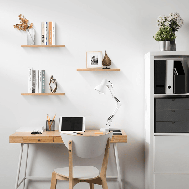 - Ahorro de Espacio: Estas repisas te ayudan a liberar espacio en superficies, permitiendo organizar y mostrar tus objetos favoritos, como libros, adornos, plantas pequeñas o trofeos, sin ocupar espacio en el suelo.